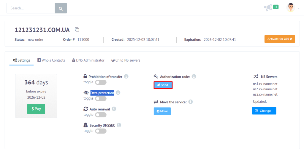 A domain transfer requires obtaining an Authorization Code (Auth-code) and disabling all restrictions that may prevent the transfer. Below is a step-by-step guide.