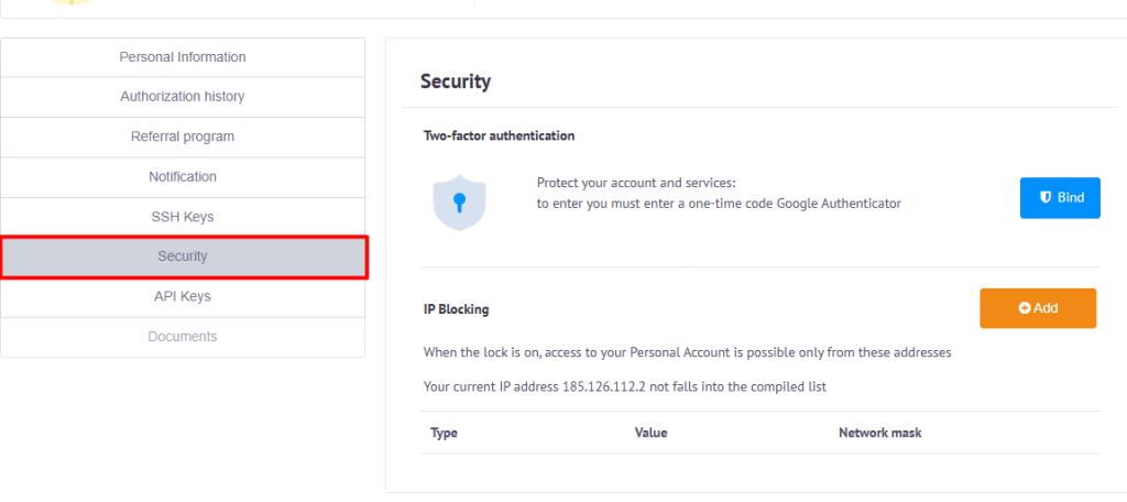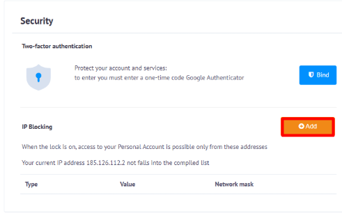 ⚠ If you use a dynamic IP (DHCP), your address may change automatically, which may block access to your account.