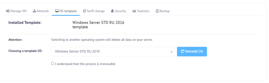 Как переустановить ОС на VPS