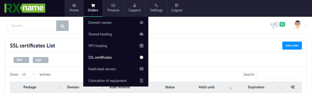 2. Перейдіть у Orders → SSL Certificates.