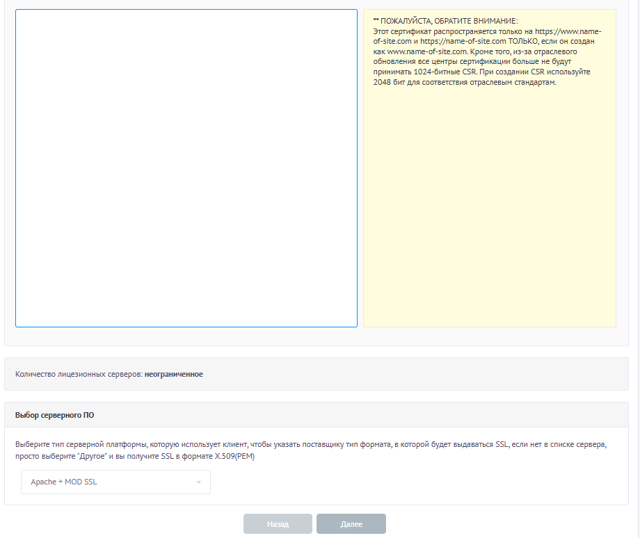 - за потреби ви можете замінити його на новий, просто вставивши новий CSR у поле.